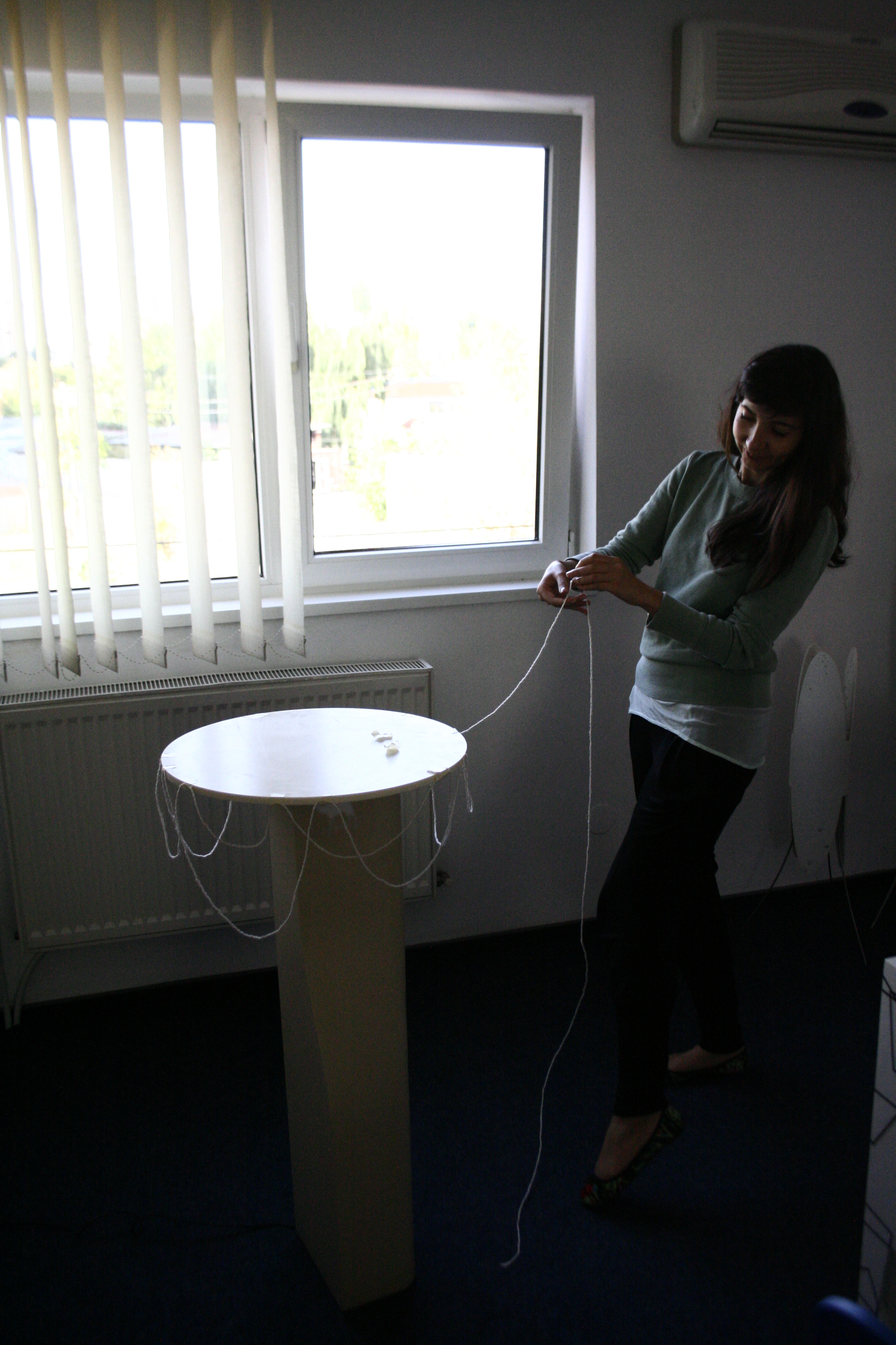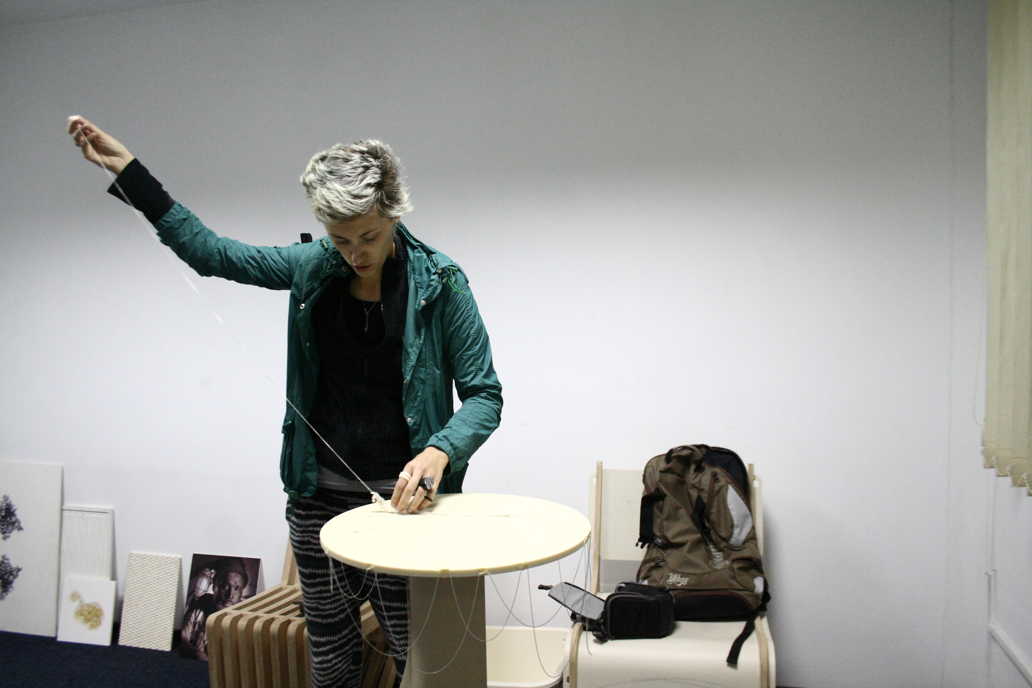 My luckycharm is a method of putting yourself in the table's skin and in the same time a method of treating its material as a human body. It's an infusion of soul in an object or a visceral vectorization in a predefined shape.I am the table and I want to get dressed for a celebration moment. A delicate netting that reminds us of the patterns on the traditional table  clothes. It's a suggestion of that presence in a contemporary language.